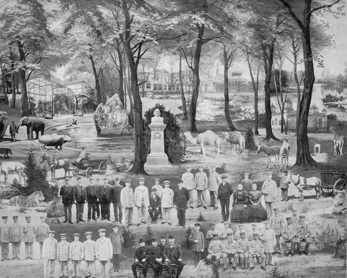 Ein historisches Gruppenfoto zeigt die Zooangestellten in Uniform und edler Robe. Foto: Zoo Köln