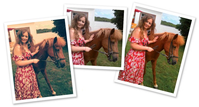 Bearbeitungen: links im Vintage- Stil, in der Mitte ein Bildausschnitt, rechts mit höherer Farbsättigung. Fotos: Lydia Schneider-Benjamin