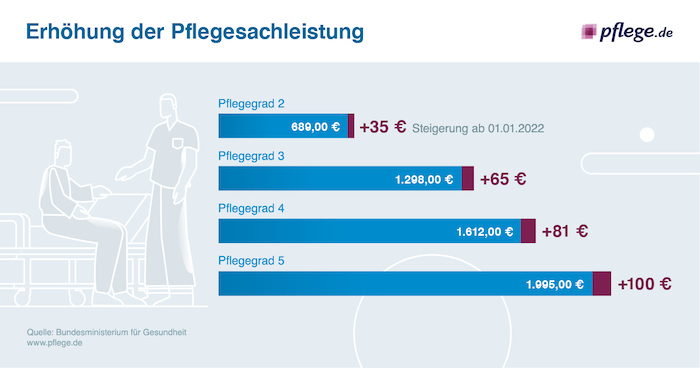 Erhöhung der Pflegesachleistung ab 2022. Infografik: www.pflege.de