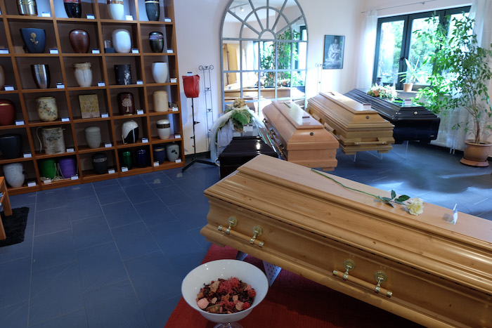 Am Ende der Planung kommt die Entscheidung, welcher Sarg oder welche Urne es sein soll. „Das mache ich immer als Letztes, denn es ist häufig ein emotionaler Moment, bei dem auch schon mal Tränen fließen“, so die Bestatterin. Und neben der eigentlichen Bestattung gibt es jede Menge Papierkram zu regeln, auch das wird besprochen. Es wird festgelegt, wohin die Sterbeurkunden geschickt werden sollen. Kopien von wichtigen Dokumenten wie Versichertenkarte oder Personalausweis werden in einer persönlichen Akte aufbewahrt.