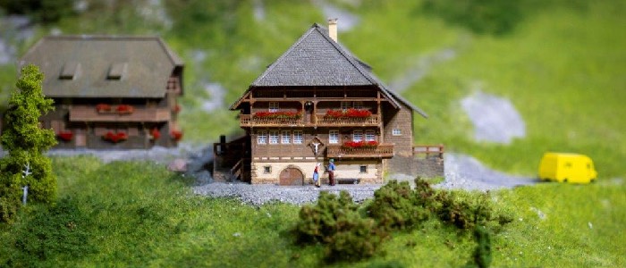 Das Modell ist ein Originalnachbau der Schwarzwaldstrecke zwischen den beiden kleinen Orten im Maßstab 1:87. Alles auf der HO-Anlage ist also 87-mal kleiner als in Wirklichkeit.