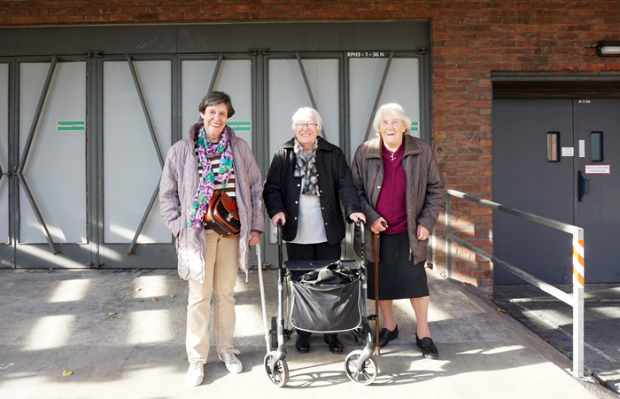 Helmi R., Christa L. und Monika P. mit Betreuerin Annika Lintl in der Kölner Oper (von links nach rechts). Foto: Laura Geyer